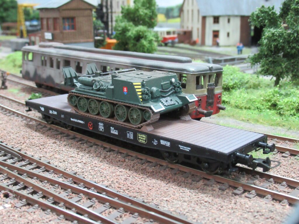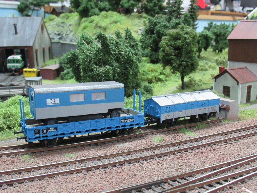Nabídku dále doplňuje plošinový vůz ŽSR s vyprošťovacím tankem VT-34 a plošinový vůz ČSD s nákladem elektrické posunovací lokomotivy ev.č. 4072 Pražského dopravního podniku.